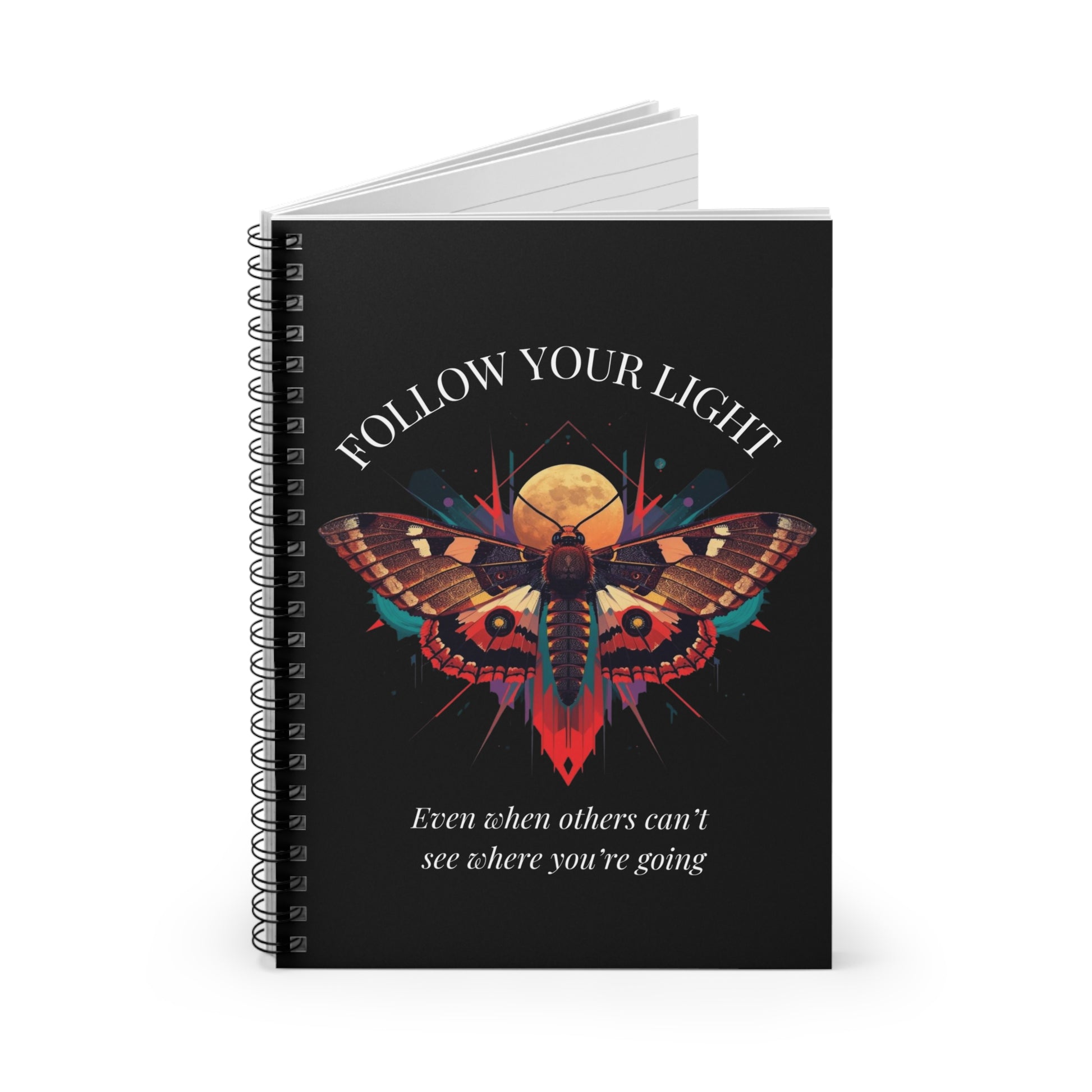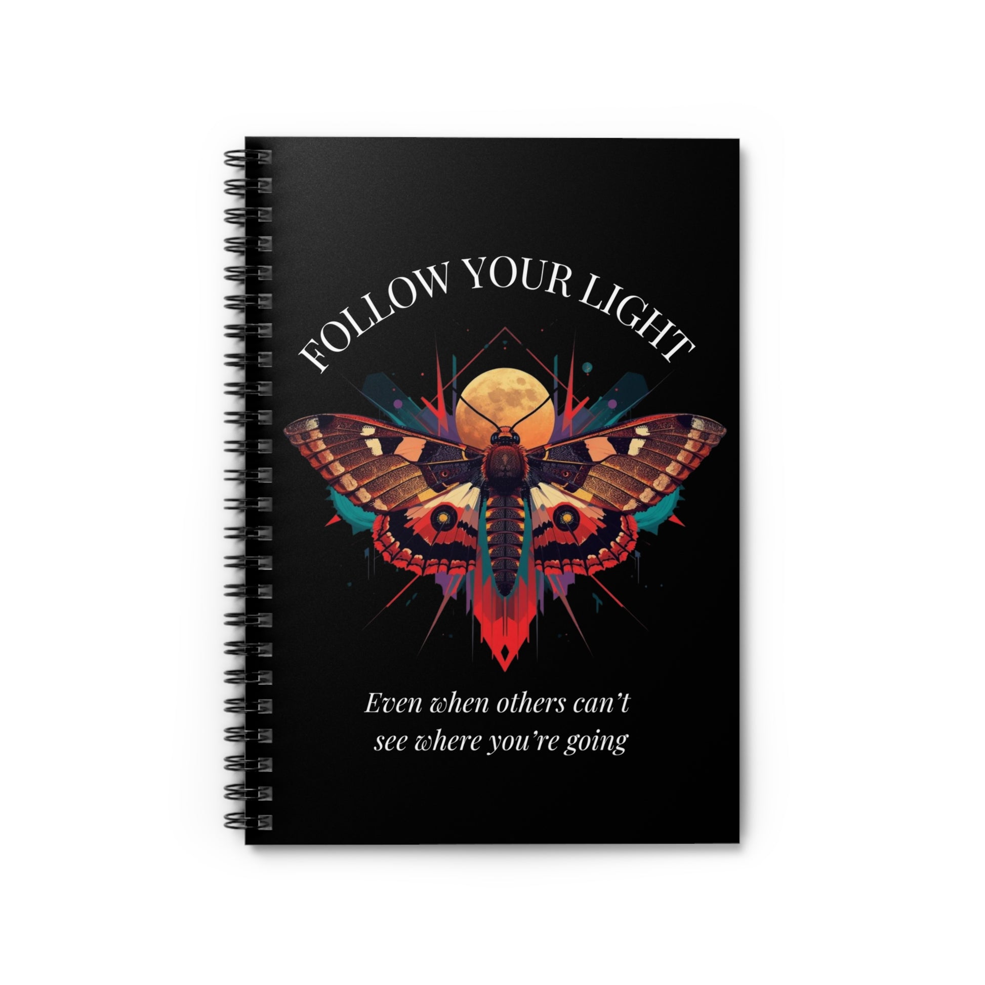 Follow Your Light Moth Spiral Notebook — Motivational Ruled Journal