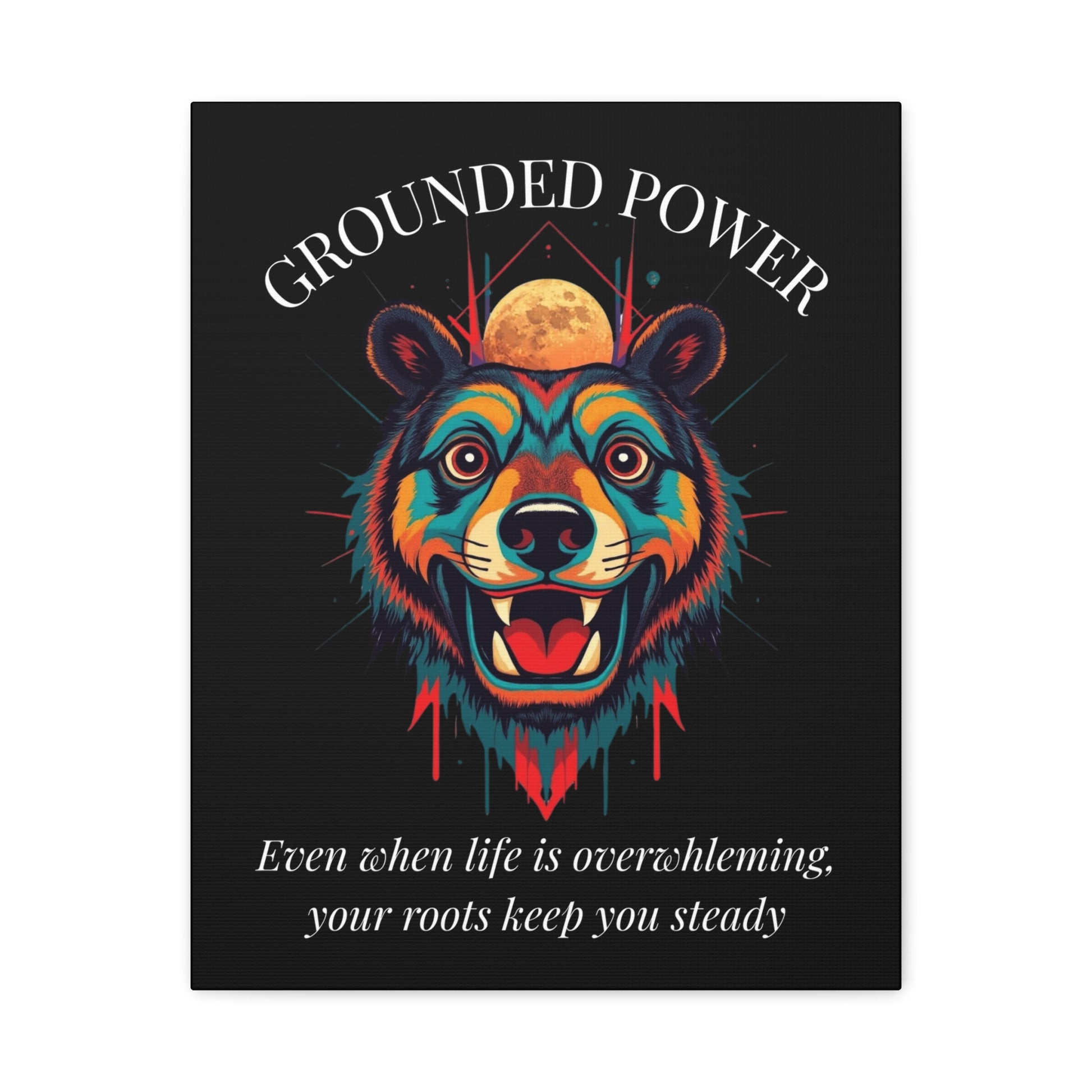Grounded Power Canvas Wall Art — Inspirational Bear with Moon Quote